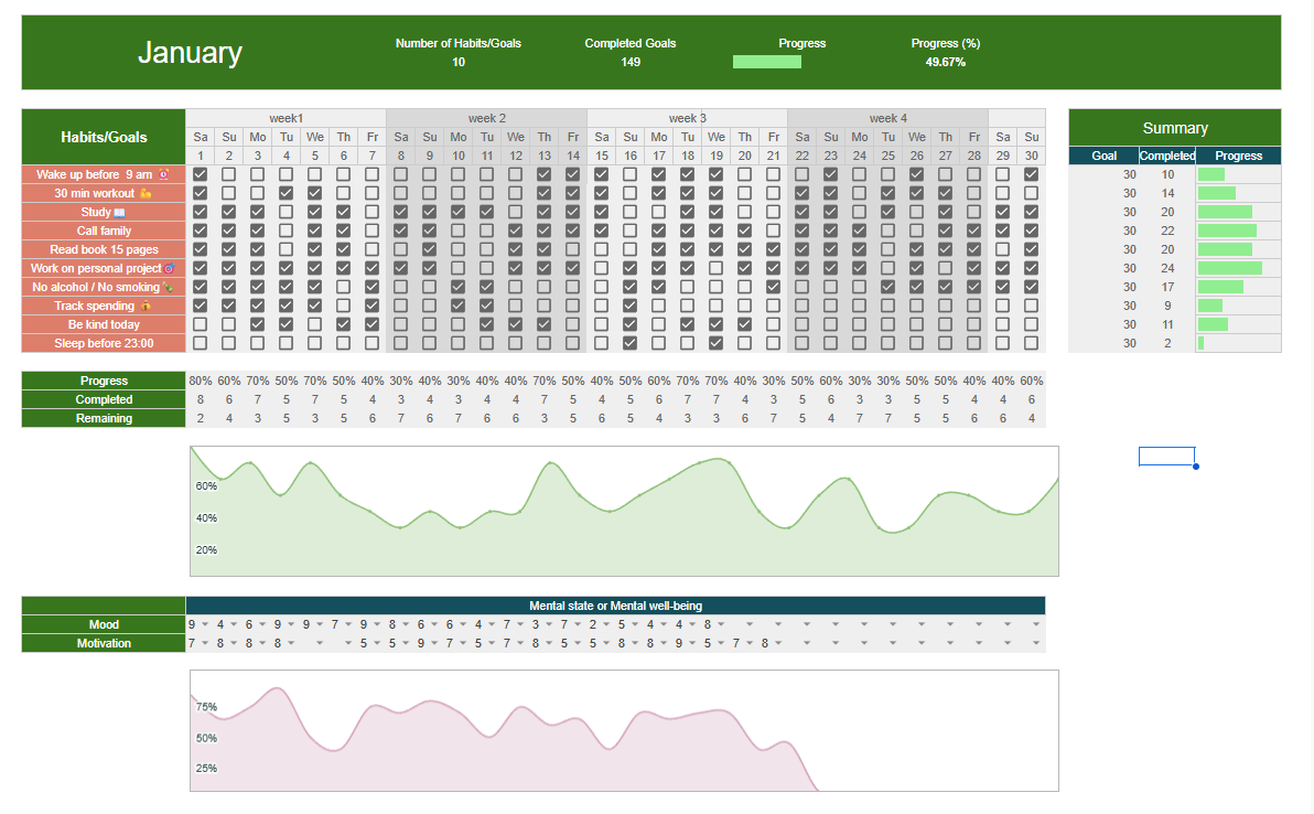 Yearly/Monthly Tracker → track habits across months + yearly stats